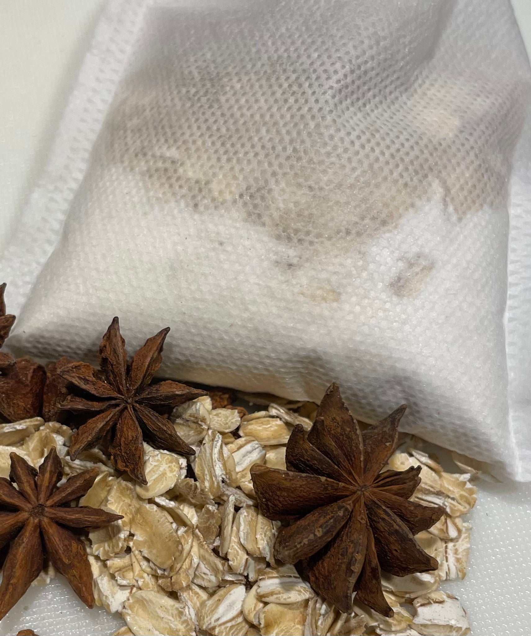 Sink into a creamy, comforting soak with this single-use tub tea, thoughtfully blended for skin nourishment and sensory delight. Each tea bag (approx. 95g) is filled with a powdered blend of: