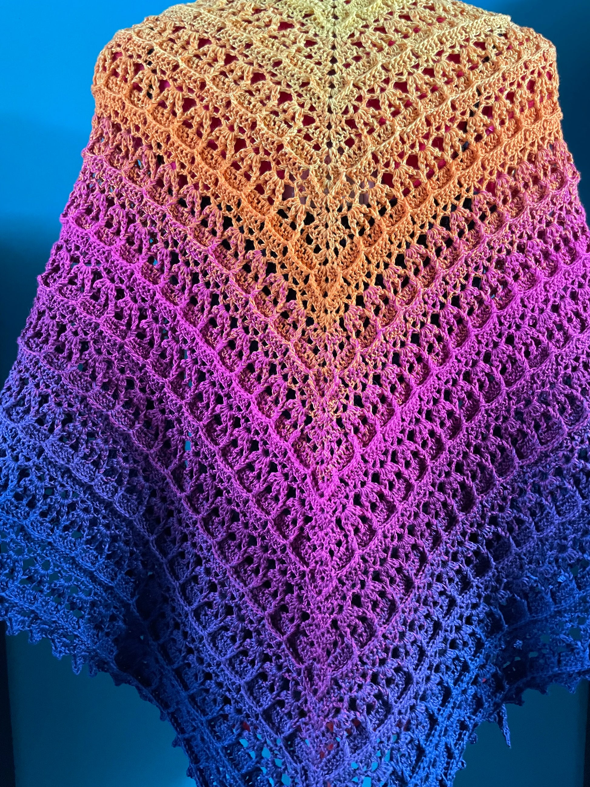 Vibrant Rainbow Lace Shawl, triangle scarf